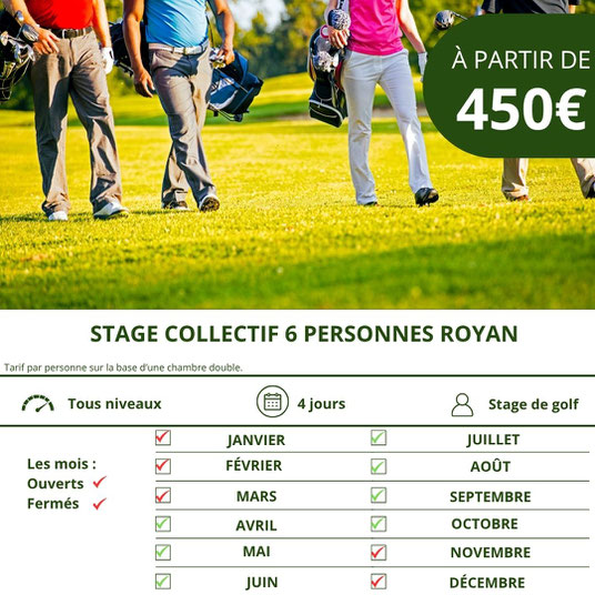 Un format idéal pour les golfeurs qui recherchent un encadrement de qualité dans une ambiance conviviale, avec un maximum de 4 participants pour garantir un suivi personnalisé.